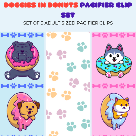 Doggies in Donuts Adult Pacifier Clip Set